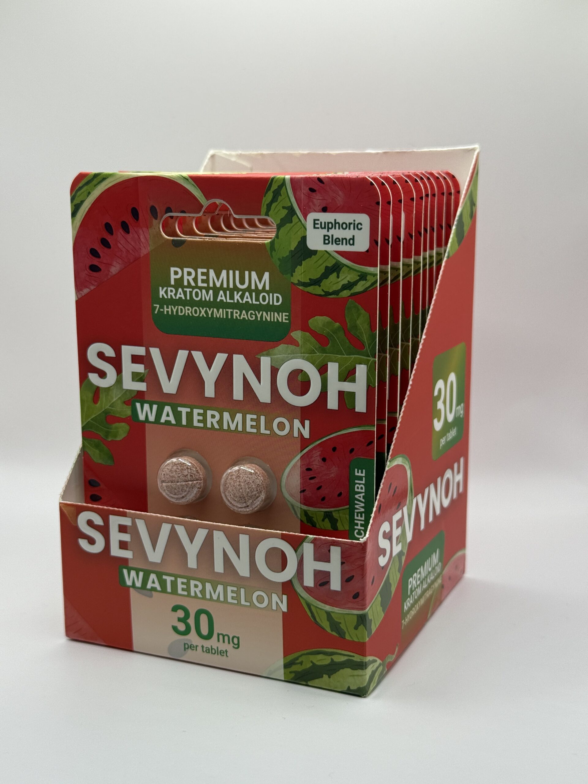 SevynOH™ delivers a powerful, fast-acting experience in a convenient and flavorful chewable form. Each Watermelon chewable tablet contains 30mg of 7-hydroxymitragynine (7OH), providing a potent and consistent dose in a juicy, fruit-forward profile. Perfect for on-the-go use, this 4-pack is ideal for experienced users seeking reliable, high-strength relief or relaxation.